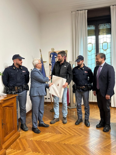Invitato sul palco, il cittadino che ha mostrato senso civico segnalando quanto stava accadendo alle forze dell’ordine è stato pubblicamente ringraziato, dal Questore di Torino Massimo Gambino, nel corso della Cerimonia odierna della celebrazione del 174° Anniversario della Fondazione della Polizia.