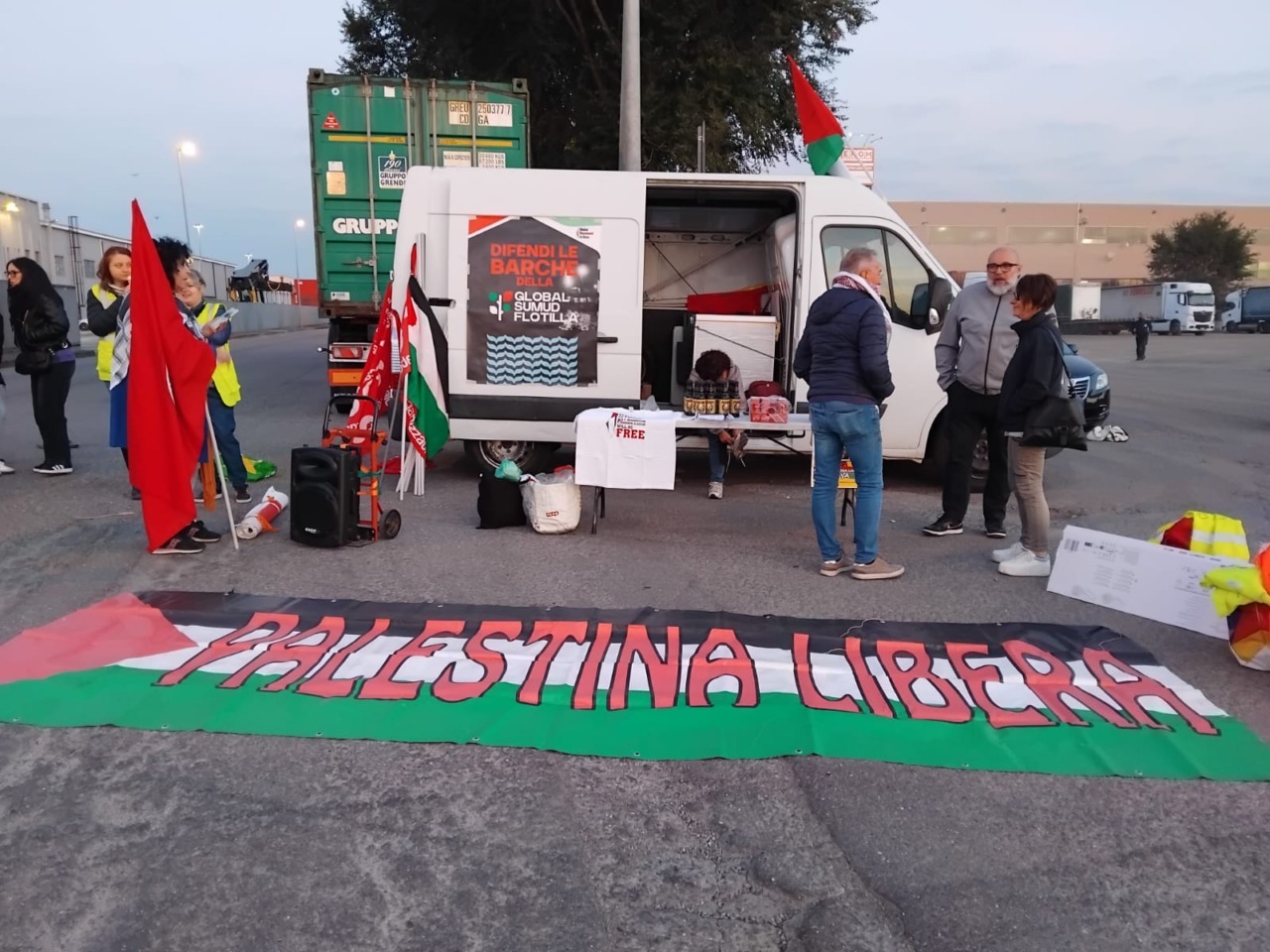Dalle 7 di questa mattina, venerdì 3 ottobre, il varco del Centro Logistico di Tortona è stato bloccato dai lavoratori e le lavoratrici della logistica, delle pulizie e della vigilanza che lavorano nel distretto che hanno aderito allo sciopero generale per la Palestina e per la Global Sumud Flotilla.