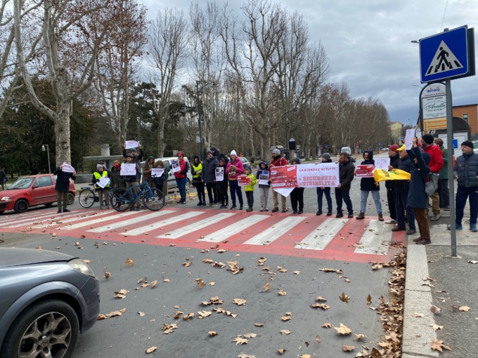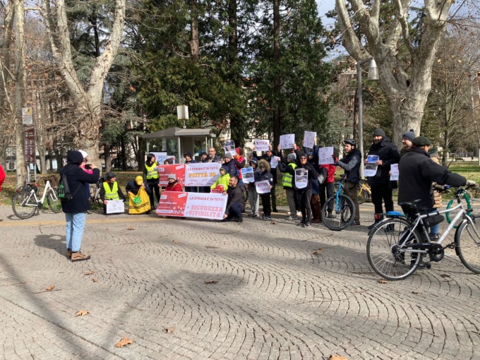ALESSANDRIA – Anche ad Alessandria si è tenuto oggi il flash mob per sensibilizzare al tema della sicurezza stradale. L’attenzione si è concentrata sugli attraversamenti stradali, teatro quotidiano di incidenti. L’appuntamento oggi era davanti alla stazione ferroviaria. Tanti i cartelli ed i manifesti dei partecipanti, che esprimevano il desiderio di potersi muovere in città e nei sobborghi in maniera sicura e non inquinante. La campagna #Città30subito è promossa da FIAB, Legambiente, Asvis, Kyoto Club, Vivinstrada, ANCMA, Salvaciclisti, Fondazione Michele Scarponi, AMODO ed è condivisa con associazioni locali, cittadine e cittadini che sentono l’esigenza di una rivoluzione nella sicurezza stradale.