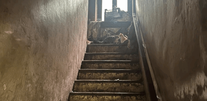Rifiuti e sporcizia di ogni genere in ogni angolo della casa, il corpo di un cane morto da tempo, chiuso in una borsa, oltre a sette gatti – di cui cinque cuccioli al di sotto dei due mesi – e tre galline nascoste tra i rifiuti.