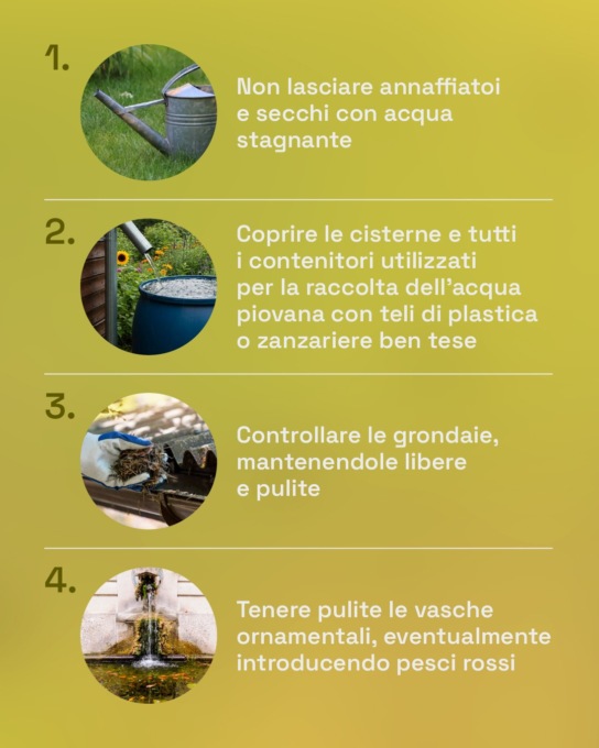 Attraverso la diffusione di materiali divulgativi chiari e diretti, realizzati con contenuti verificati da IPLA – Istituto per le Piante da Legno e l’Ambiente, l’Amministrazione comunale intende sensibilizzare la cittadinanza sull’importanza di adottare semplici accorgimenti quotidiani per contrastare la presenza di questi insetti.