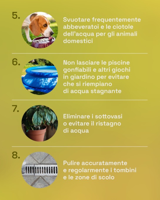 I materiali informativi elencano otto consigli pratici per limitare la formazione di focolai larvali nelle aree private, dove l’azione dei singoli cittadini è determinante: dalla rimozione dell’acqua stagnante nei sottovasi, alle buone pratiche per la pulizia di grondaie e tombini, fino alla corretta gestione di fontane e giochi da giardino. Piccoli gesti che, se attuati con costanza, possono produrre grandi risultati per la salute pubblica e la qualità della vita.