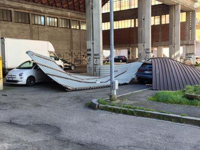 Una struttura compresa fra via Cilea e via Vinzaglio ad Alessandria ha perso la copertura che è caduta sulle auto sottostanti. Sul posto la Polizia Municipale.