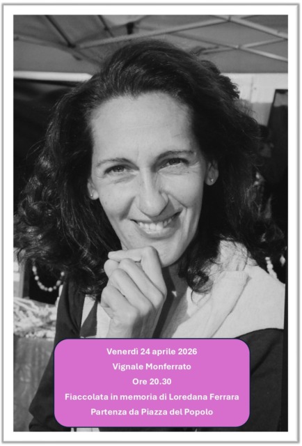 Fiaccolata in ricordo di Loredana Ferrara, venerdì sera a Vignale Monferrato, promossa dal Club Unesco locale e dal centro antiviolenza Medea di Alessandria.