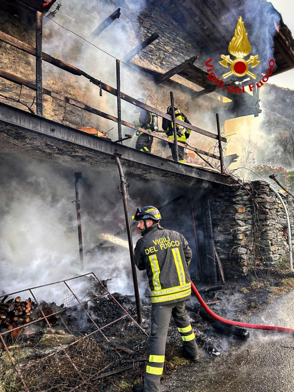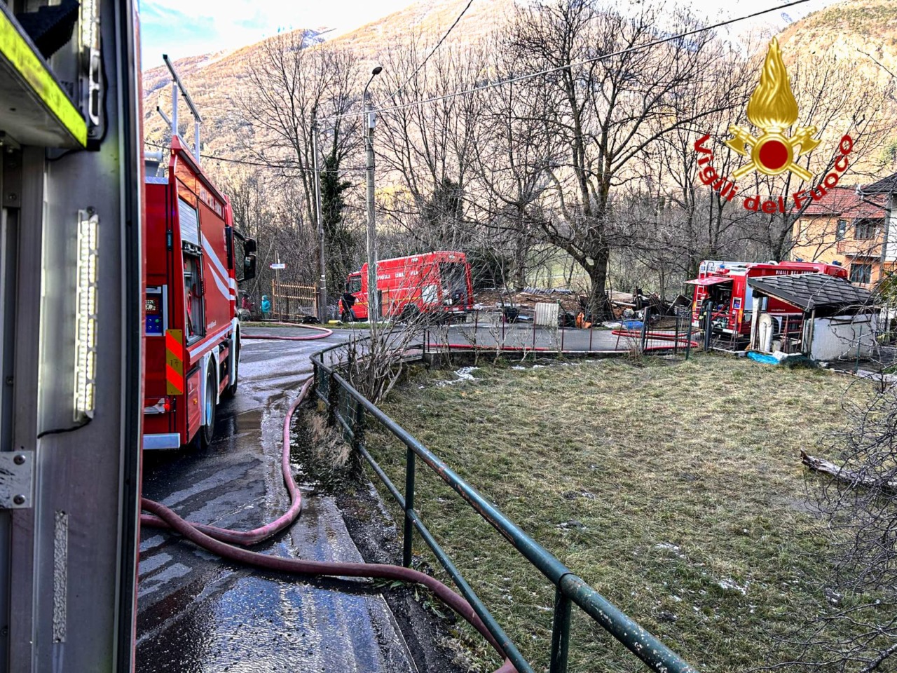 Intervento in corso dei vigili del fuoco a Novalesa, nel Torinese, per un incendio di un’ abitazione.