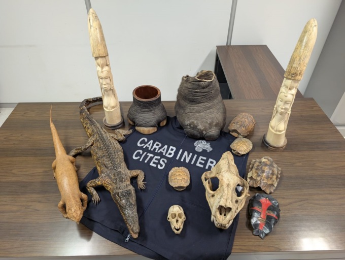 A seguito di alcune verifiche tecniche ed analisi per il corretto riconoscimento i Carabinieri Forestali specificano quanto sequestrato: 12 zanne in avorio, 2 zampe e 1 coda di elefante africano, 41 zanne di ippopotamo, 1 teschio di primate ed 1 di leone, 3 pelli di pitone africano (di cui una di circa 6mt), 7 pelli di gattopardo africano, 2 pelli di leopardo, 1 rostro appartenente ad un esemplare di pesce sega, 4 grandi carapaci di testuggini marine, 1 esemplare di corallo scleractinia ed ulteriori esemplari imbalsamati di coccodrillo, poiana di Harris, varano, marmotta, scoiattolo rosso, lontra, tasso e ghiro. I beni sono stati posti sotto sequestro con finalità di confisca in applicazione della Convenzione di Washington.