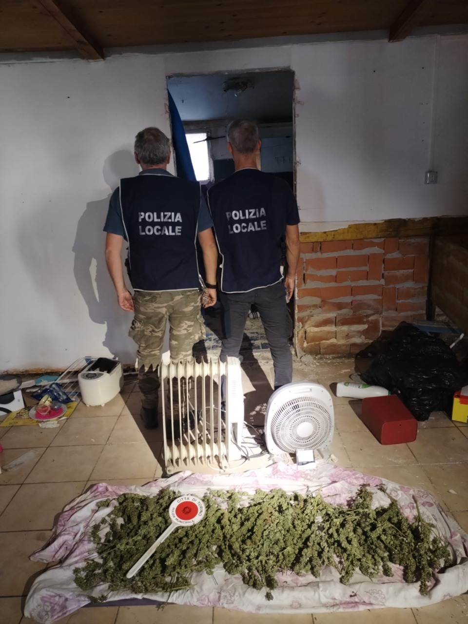 Durante un controllo di routine all’area comunale attrezzata per la sosta di camper e roulotte, gli agenti del Reparto Informativo Sicurezza Integrazione della Polizia Locale hanno notato un vistoso lucchetto a chiusura di una baracca abbandonata. Insospettiti, hanno deciso di ispezionarla e al suo interno, nascosti nella stanza più lontana dall’ingresso, hanno scoperto alcuni stendini da bucato dove erano state adagiate infiorescenze di piante di marijuana, con accanto due stufette elettriche accese per facilitarne l’essiccamento.