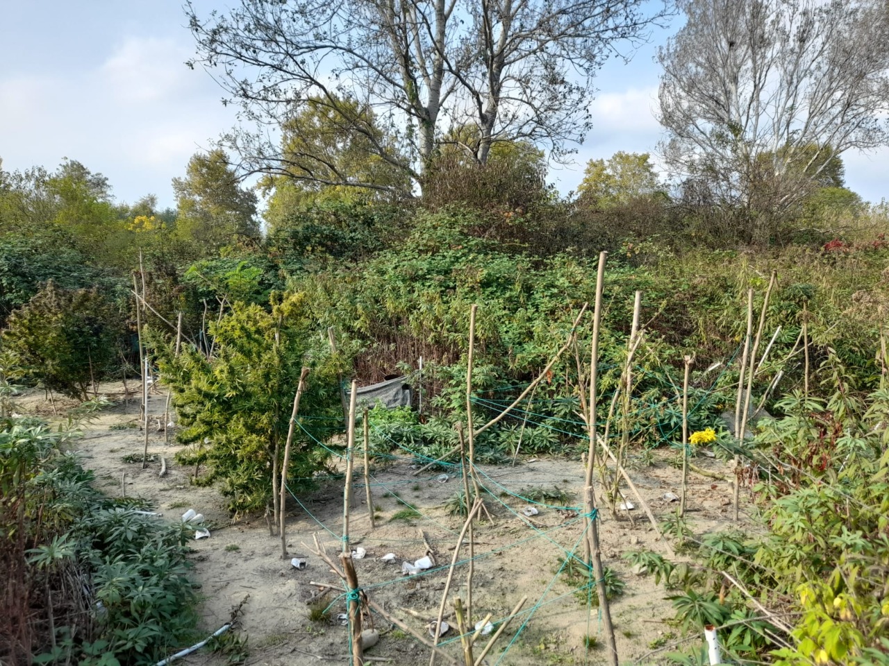 Poco lontano dalla baracca, sulle sponde del fiume Stura, i “civich” hanno scovato una piccola struttura in muratura. Qui, sotto un pezzo di polistirolo, c’era una cassa che nascondeva 23 buste sigillate sottovuoto, già pronte per lo smercio, per un totale di quasi altri quattro chilogrammi di marijuana, sequestrati anch’essi insieme alla struttura. Sempre nei dintorni, celato nella vegetazione, gli agenti hanno anche scoperto il campo dove veniva coltivata la marijuana. Qui hanno trovato ancora presenti sette piante, alcune delle quali alte fino a 190 centimetri, che sono state sradicate e poste sotto sequestro.