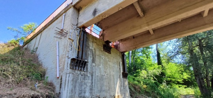 E’ stato lo stesso presidente Luigi Benzi a prendere visione, con amministratori e tecnici, agli interventi di consolidamento in corso, che consistono in attività su diversi e delicati fronti, che porteranno al riposizionamento finale del viadotto che verrà indicativamente riaperto tra la fine di luglio e i primi di agosto.
