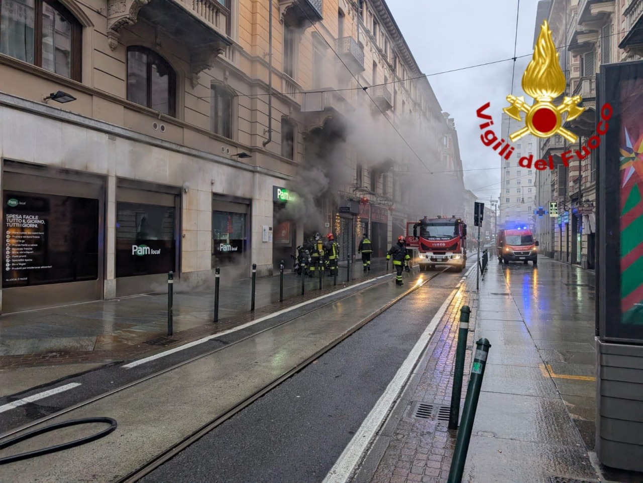 Torino, Vigili del Fuoco all’opera in via XX Settembre per incendio