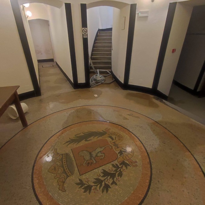 Ignoti hanno sfondato il vetro della porta di ingresso con un estintore, poi hanno rovesciato alcune latte di vernice presenti in una delle sale, danneggiato il bancone dell’ex bar e imbrattato i muri con una bomboletta spray.