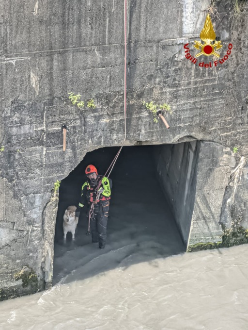 Le squadre, tra cui specialisti saf e sommozzatori, sono intervenute per recuperare l’animale, dopo che questo è stato trascinato lungo la corrente, fortunatamente in buone condizioni.