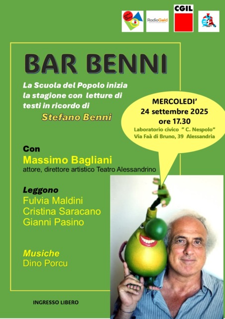 La stagione inizia mercoledì 24 settembre con le letture di testi in ricordo di Stefano Benni, con Massimo Bagliani, attore e Direttore artistico del Teatro Alessandrino. Letture a cura di Fulvia Maldini, Cristina Saracano, Gianni Pasino. Accompagnamento musicale di Dino Porcu.