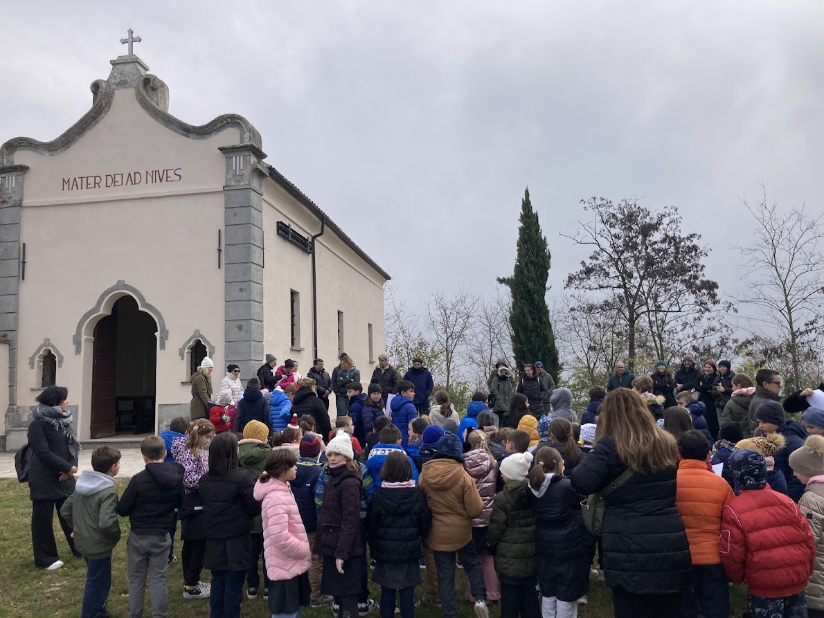 Accanto alla storica chiesa – recentemente restituita al suo antico splendore grazie ai lavori di messa in sicurezza, ristrutturazione e risanamento conservativo – sono stati piantumati tre cipressi, donati dall’agronomo e consigliere comunale Giuseppe Nervo, che ha guidato i bambini nella loro messa a dimora.
