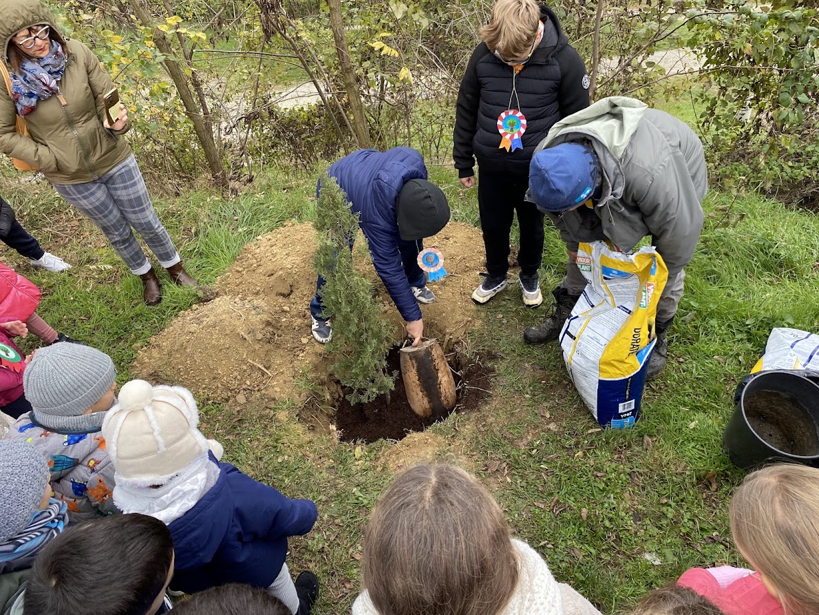 La mattinata è stata organizzata con il supporto degli insegnanti e con la partecipazione attiva di genitori, nonni e rappresentanti dell’Amministrazione Comunale. Durante la cerimonia, gli alunni dell’Infanzia e della Primaria hanno intonato una canzone preparata nelle settimane precedenti, mentre la classe 5ª ha letto alcune riflessioni dedicate al valore degli alberi, alla natura e al nostro ruolo di custodi dell’ambiente.