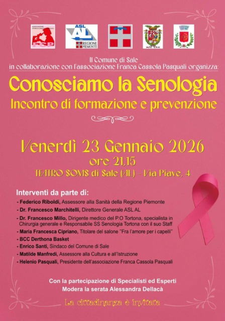 Inizia così il 2026 per i professionisti dell’équipe multidisciplinare guidata dal dottor Francesco Millo, che, grazie all’invito dell’Amministrazione Comunale di Sale ed in collaborazione con i volontari dell’associazione Franca Cassola Pasquali di Castelnuovo Scrivia, potranno raccontare ciò di cui si occupano e che vivono ogni giorno, al servizio delle donne malate e dei familiari che sono al loro fianco.