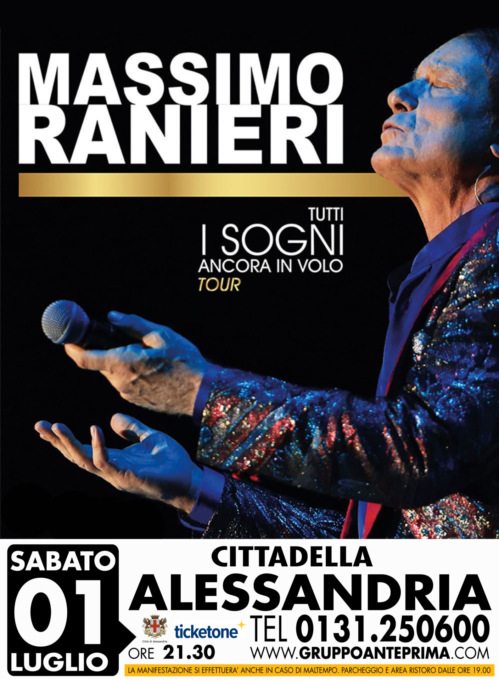 Il penultimo appuntamento in Cittadella, il 30 giugno, è una “DATA ZERO”: ad Alessandria arriva con il suo “Live 2023” Gianluca Grignani. 26 anni di carriera e oltre 5 milioni di dischi venduti: sul palco Gianluca Grignani ripercorrerà la sua carriera musicale da Destinazione Paradiso e La mia storia tra le dita fino all’ultimo successo di San Remo di quest’anno, Quando ti manca il fiato. E non cantare a squarciagola sarà impossibile. Ma forse la data più unica nel suo genere, anche perché è l’unica per il Tour Estivo nel Nord Italia, è quella del 1 luglio dove in Cittadella arriva il grande Massimo Ranieri con il suo “Tutti i Sogni ancora in Volo Tour”.