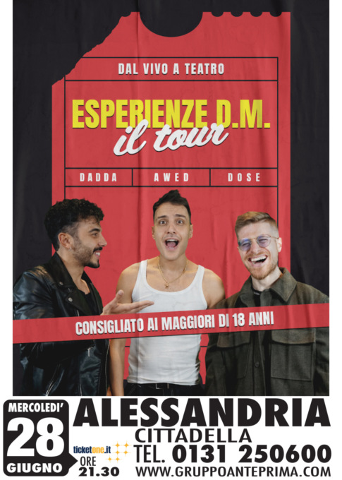 Mercoledì 28 giugno sarà la volta del live show “Esperienze D.M.” di Simone Paciello (Awed), Riccardo Dose e Daniele D’Addetta (Dadda) youtuber che spopolano per i loro video di “vita quotidiana”: audio e performance che coinvolgono i fan e il pubblico.